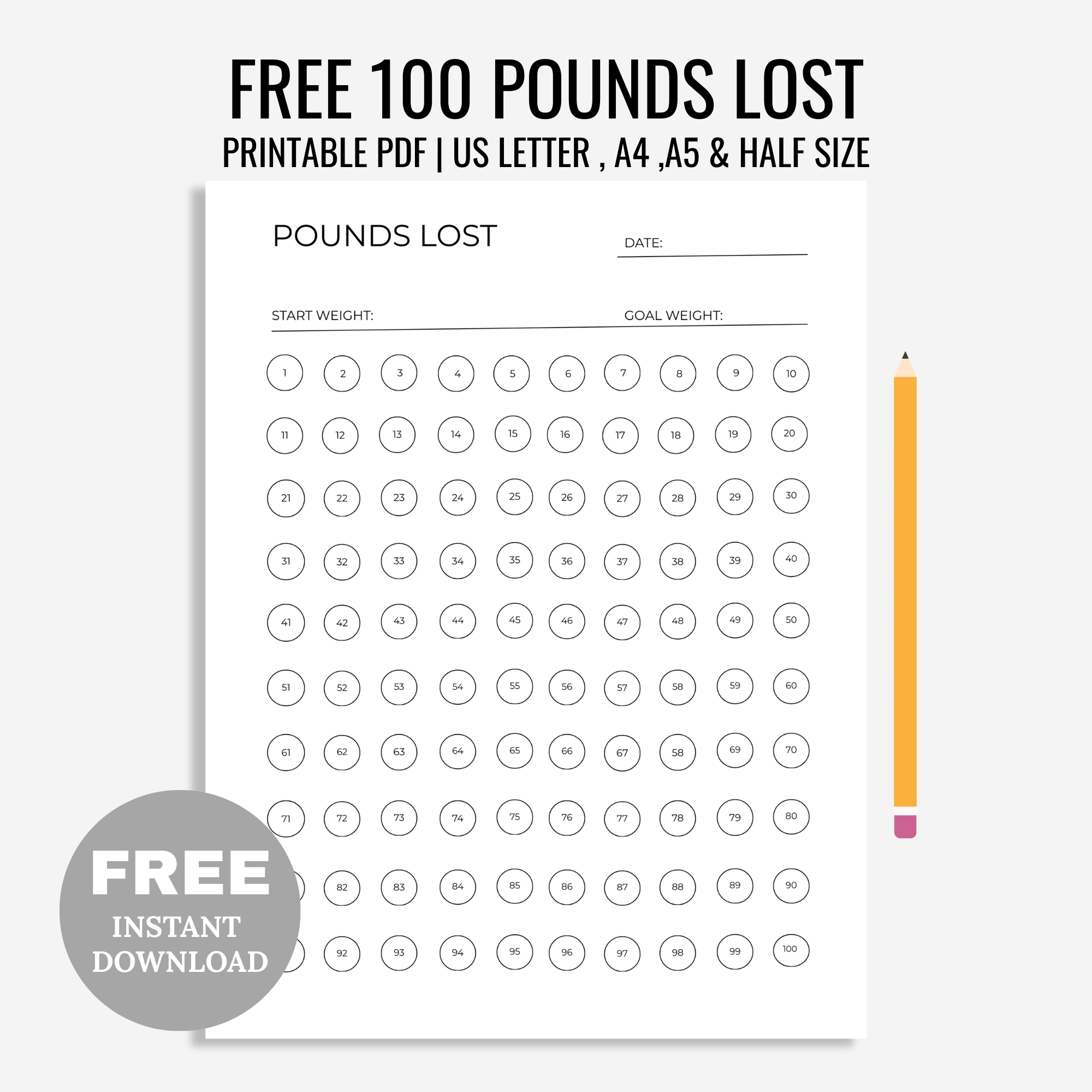 FREE Printable 100 Pounds Lost Weight Tracker Printable, Weight Loss Tracker, Weight Loss Journal, Weight Goal, A4/A5/Letter/Half, Instant Download PDF